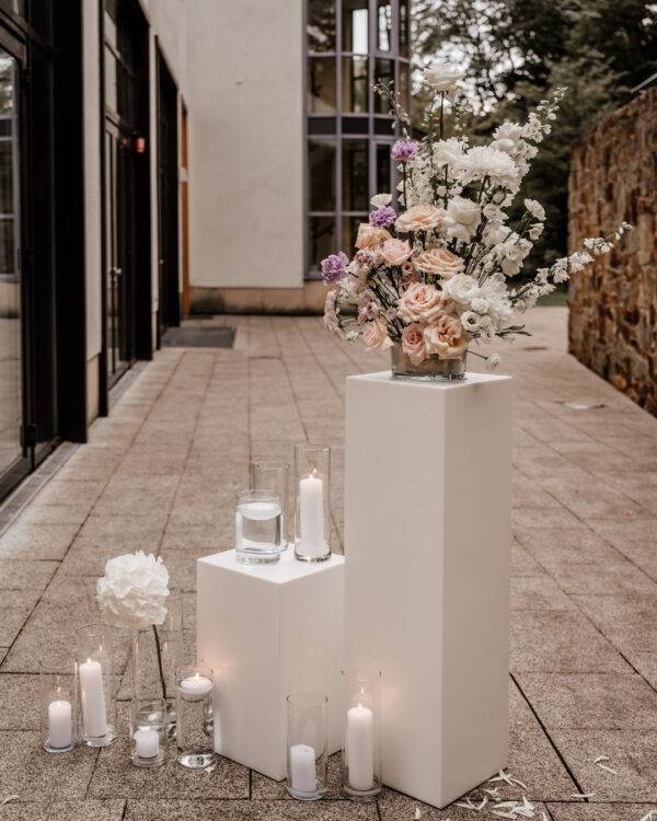 So könnt ihr perfekt in unterschiedlichen Höhen dekorieren und verleiht der Lokation eine schlichte und stilvolle Note.